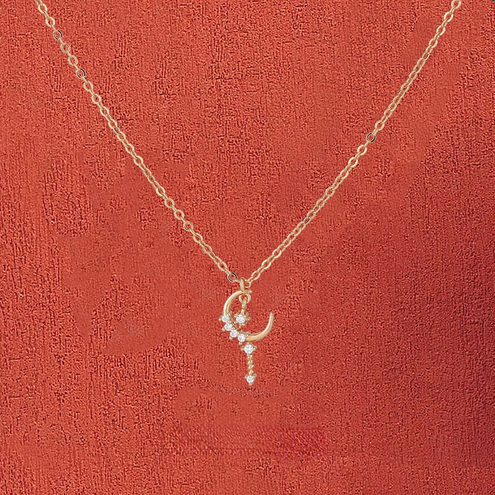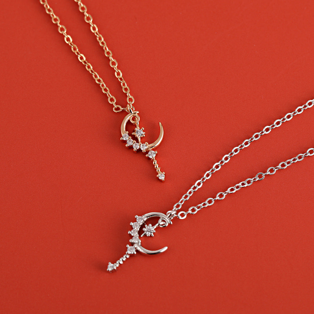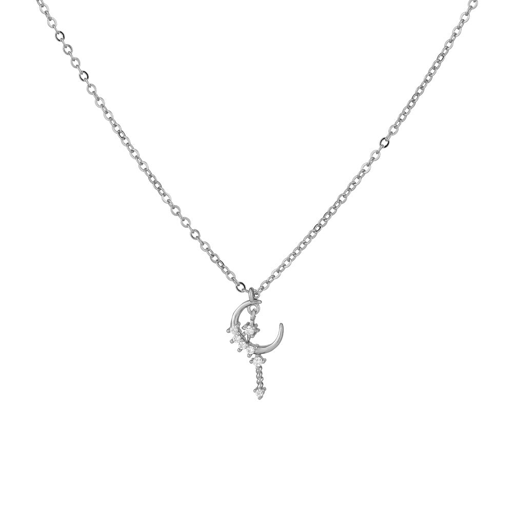 Zircon Moon with Star Short Tassel Silver Necklace for Women