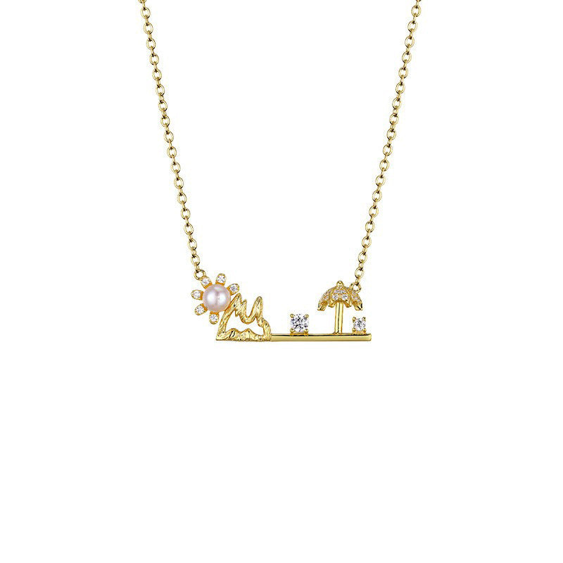 Sunshine Beach Umbrella with Zircon and Pearl Silver Necklace for Women