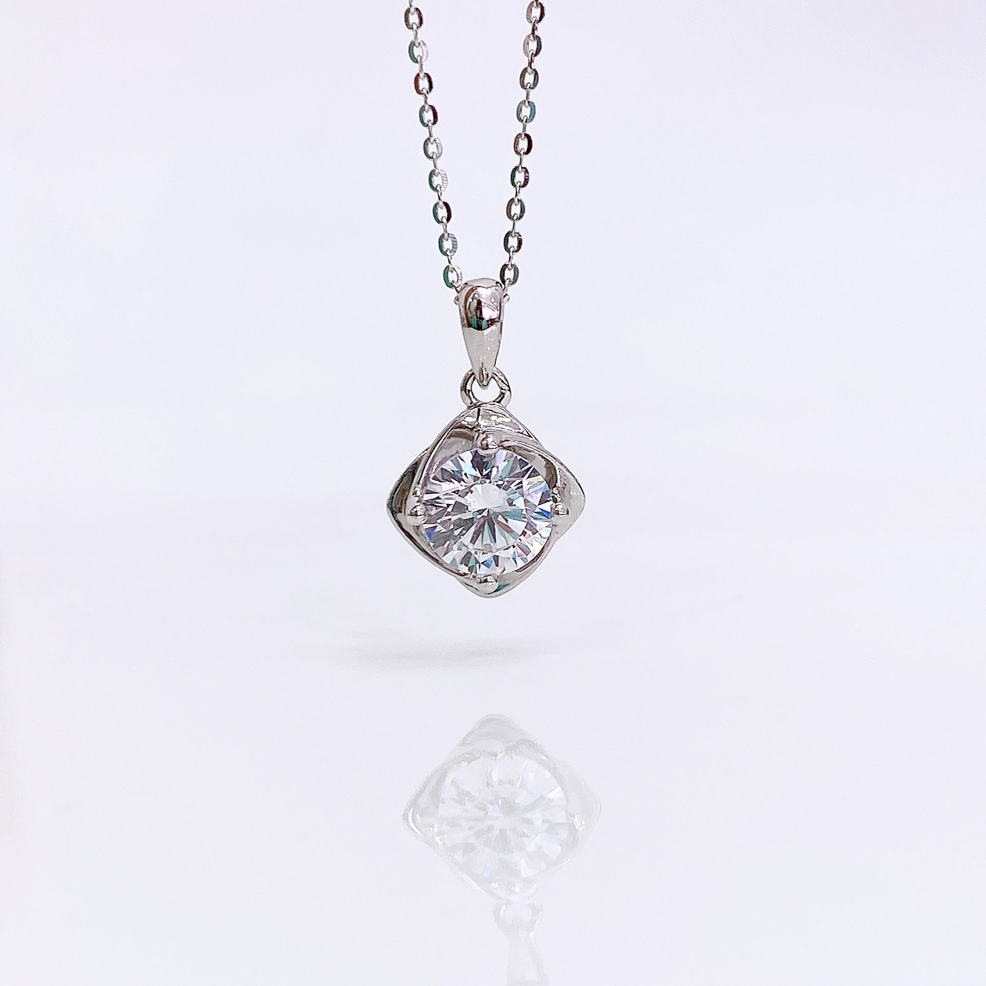 Four Prongs Round Zircon Windmill Pendant Silver Necklace for Women