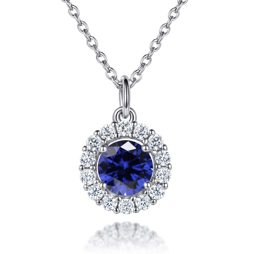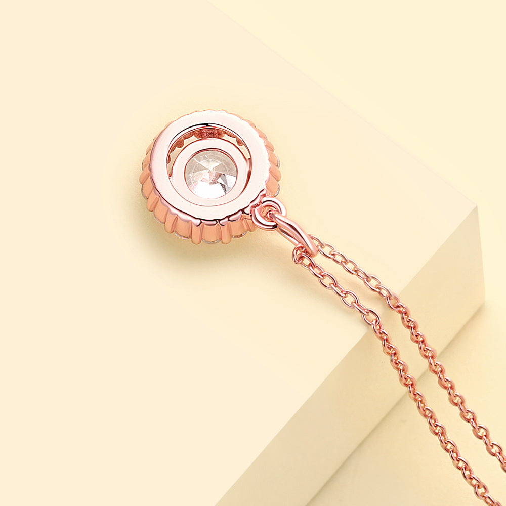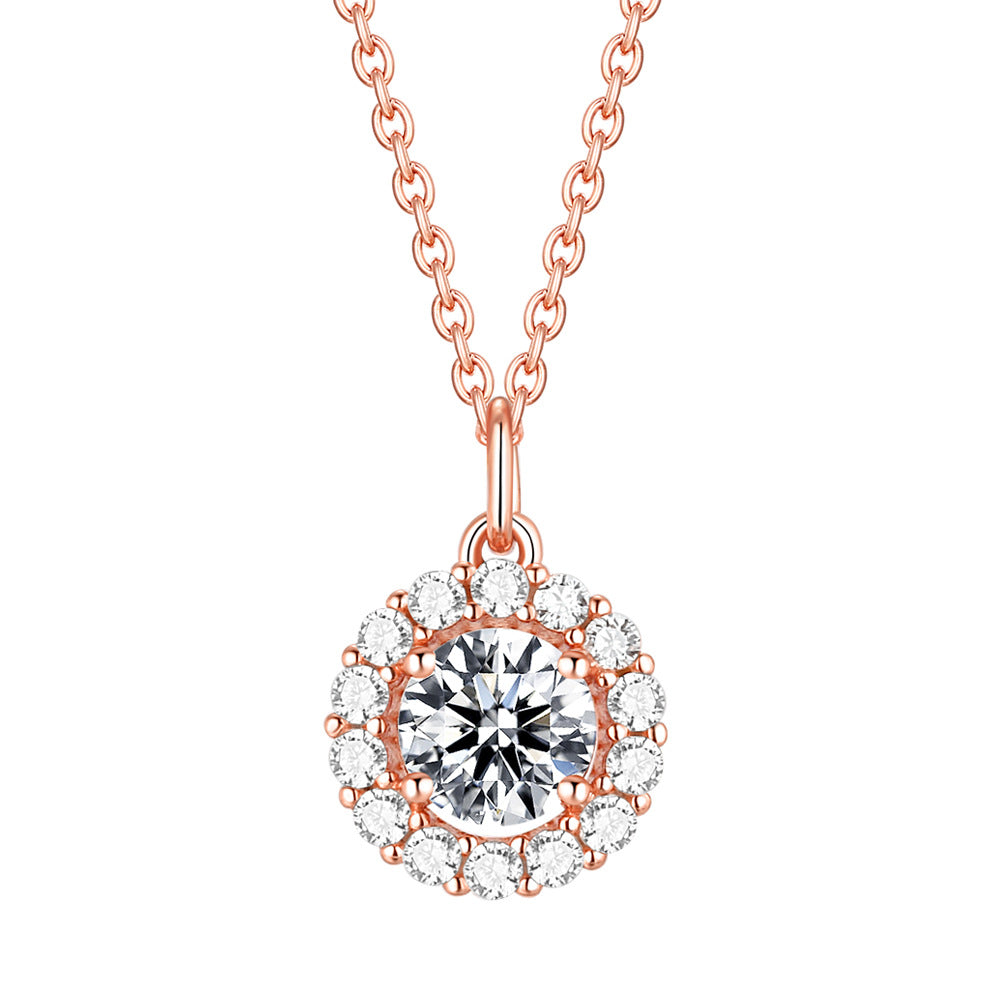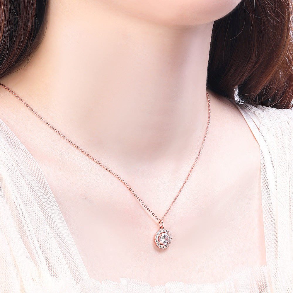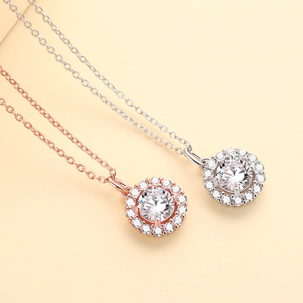 Soleste Halo with Round Zircon Pendant Silver Necklace for Women