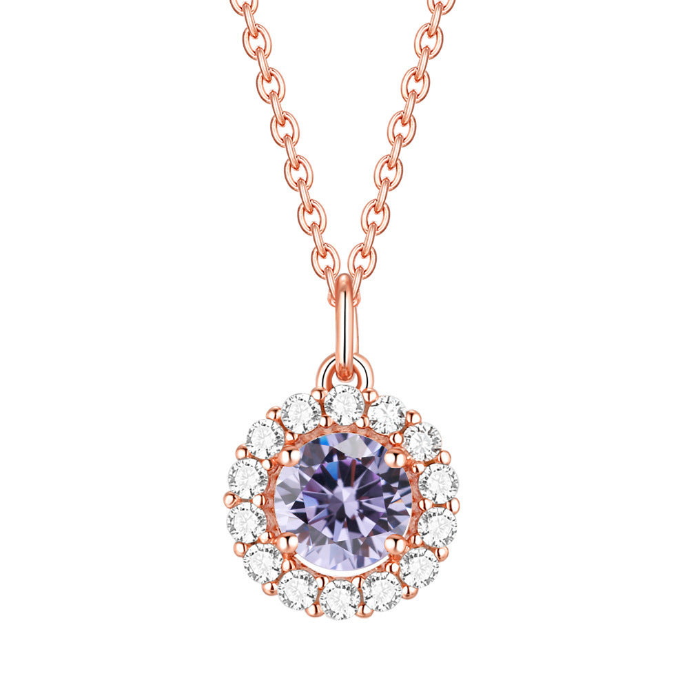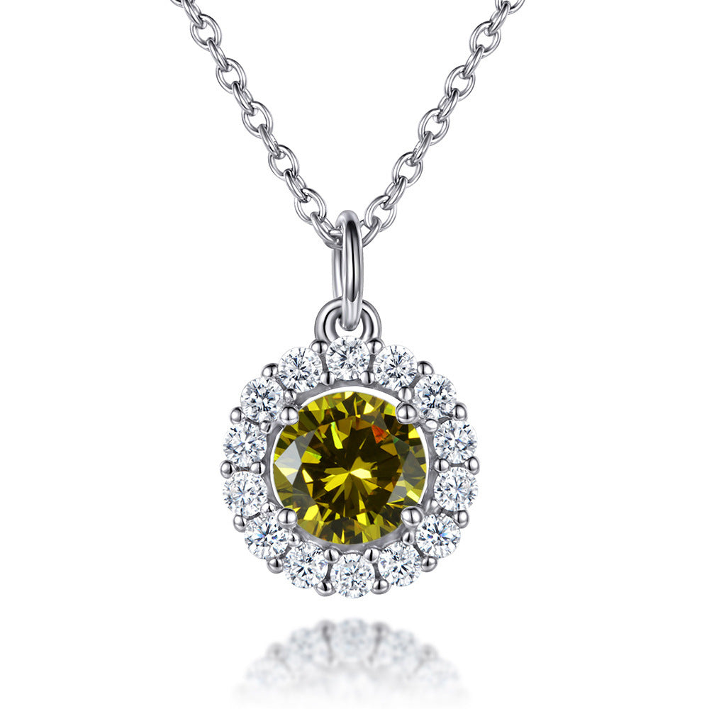 This Soleste Halo with Round Zircon Pendant Silver Necklace for Women is a beautiful, sophisticated piece of jewelry. Its unique design features a different colour round zircon pendant surrounded by a soleste halo, adding a luxurious and eye-catching sparkle.