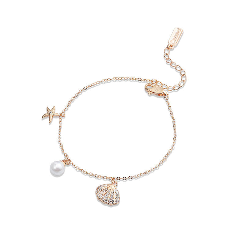 Zircon Shell with Starfish and Pearl Silver Bracelet for Women