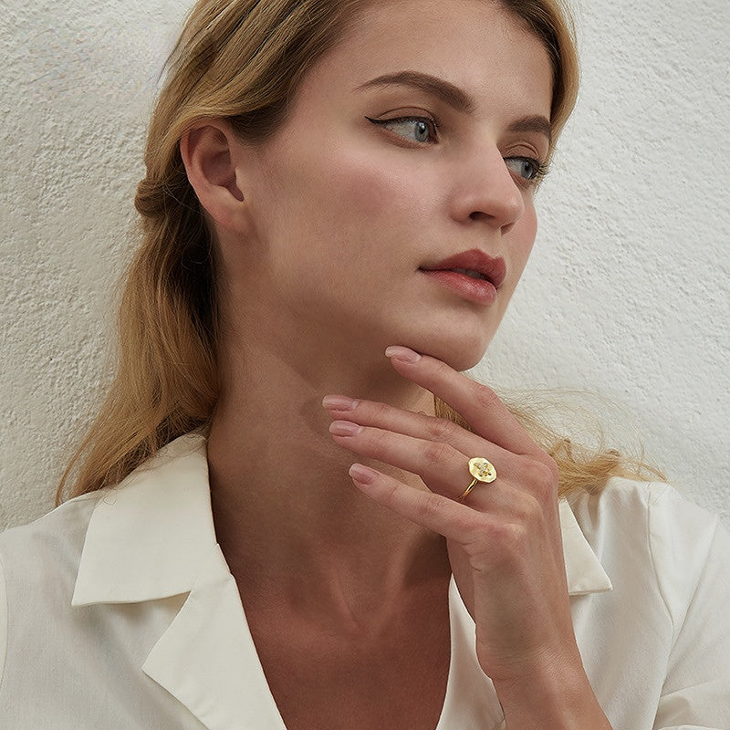 This Zircon Flower Pattern Irregular Circle Silver Ring is a perfect choice for adding a touch of class to your wardrobe. Crafted from sterling silver plated in gold and featuring a beautiful zircon flower pattern in an irregular circle, it is guaranteed to add elegance to any outfit.