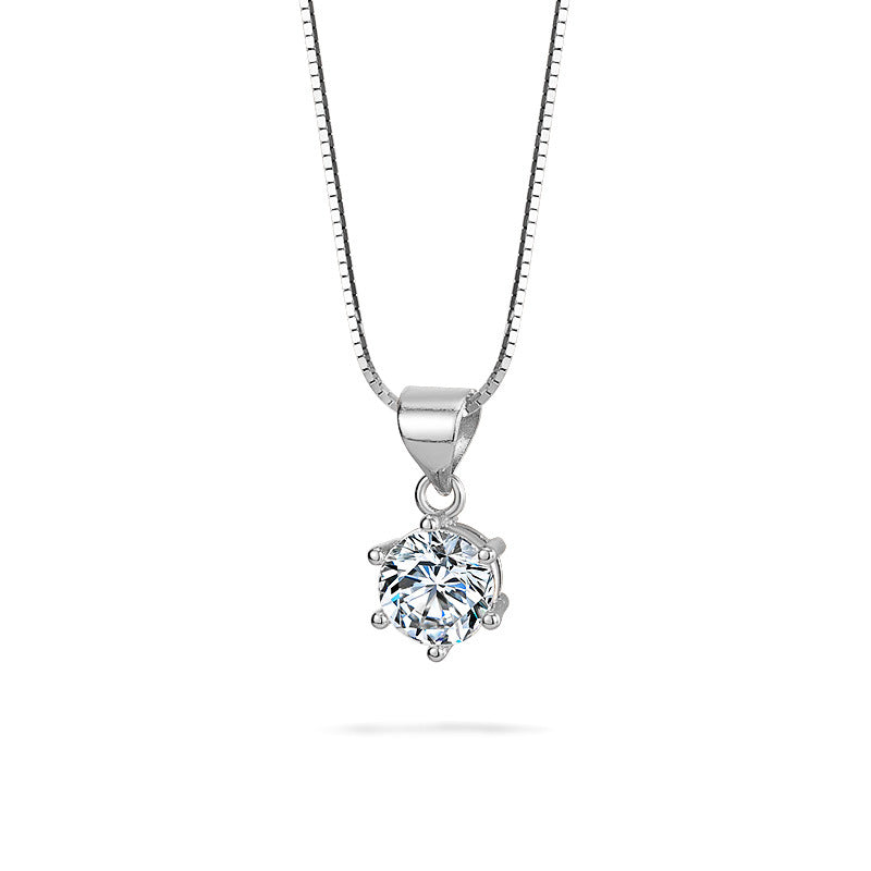 Six Prongs Round Zircon Pendant Silver Necklace for Women