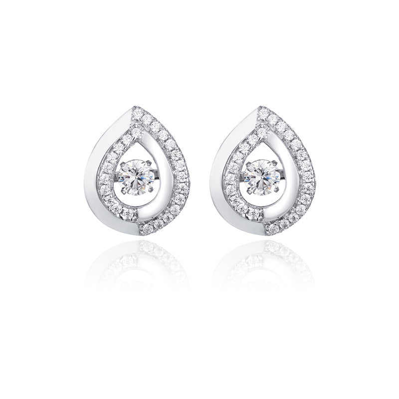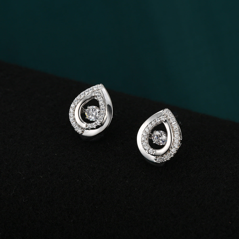 Round Zircon Pear Drop Silver Studs Earrings for Women