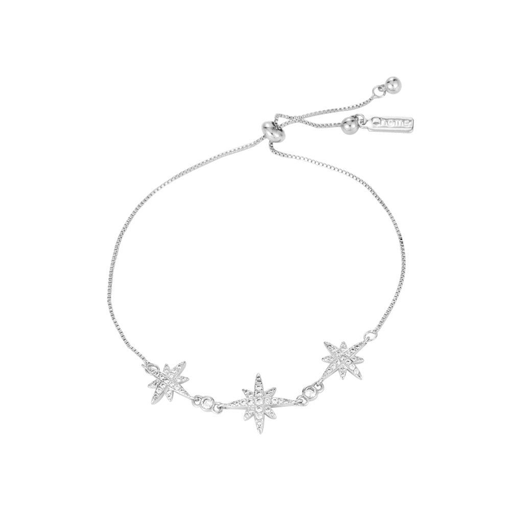 Three Zircon Octagonal Stars Silver Bracelet for Women