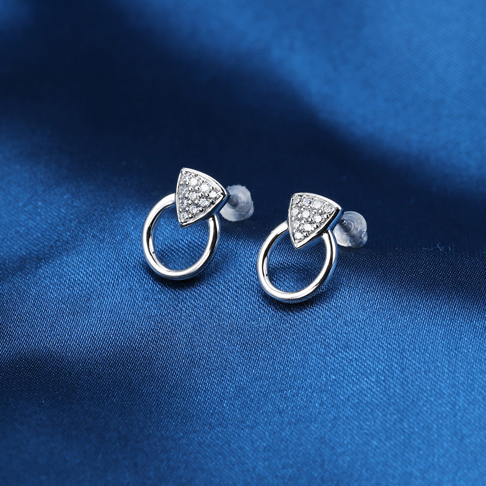 Zircon Triangle Hollow Circle Silver Studs Earrings for Women